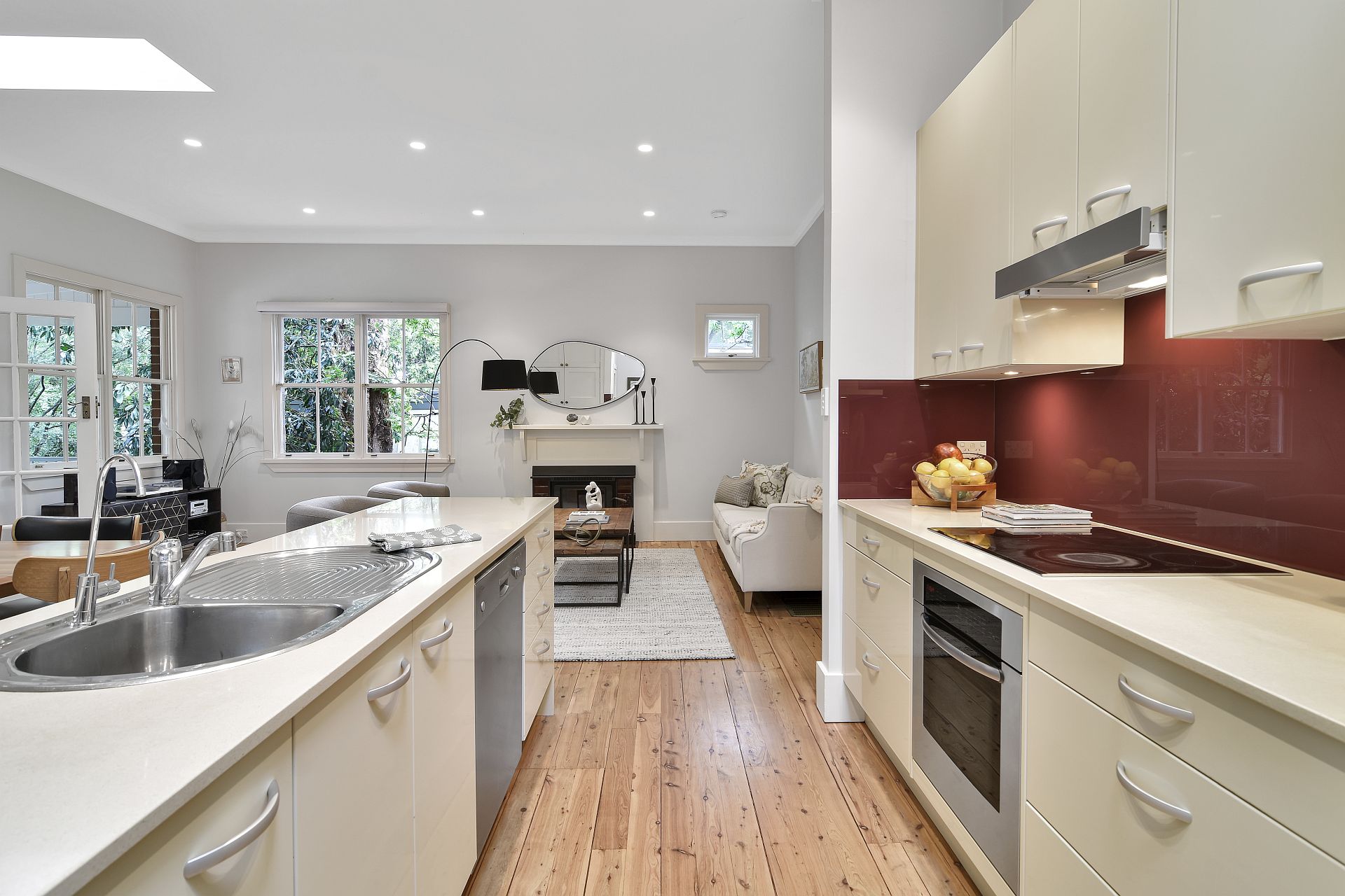 - Timber flooring extends across the home, enhanced by underfloor heating